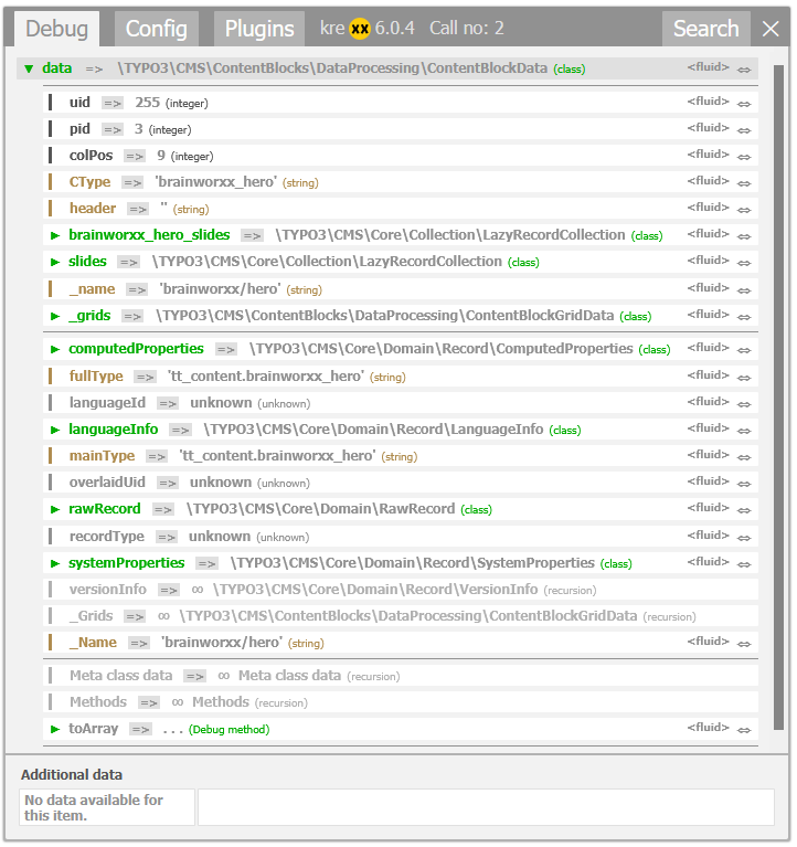 Der Fokus von kreXX liegt darauf, Entwickelnden einen vollständigen Einblick in alle verfügbaren Datenstrukturen zu ermöglichen. Mit der aktuellen Version 6 wurde insbesondere die Unterstützung für dynamische Werte weiter ausgebaut, sodass kreXX optimal für die Entwicklung mit TYPO3 und Fluid 5 geeignet ist.